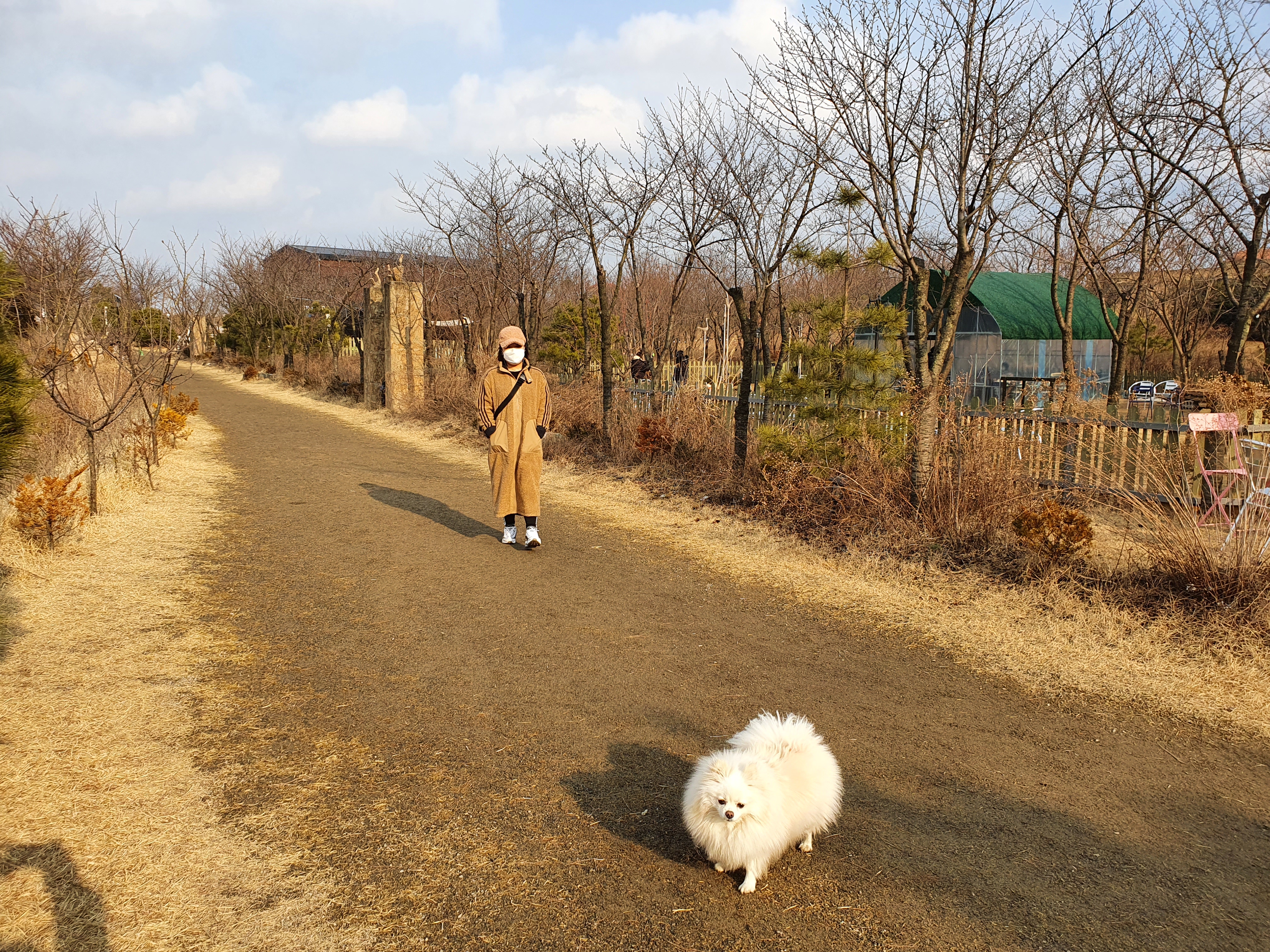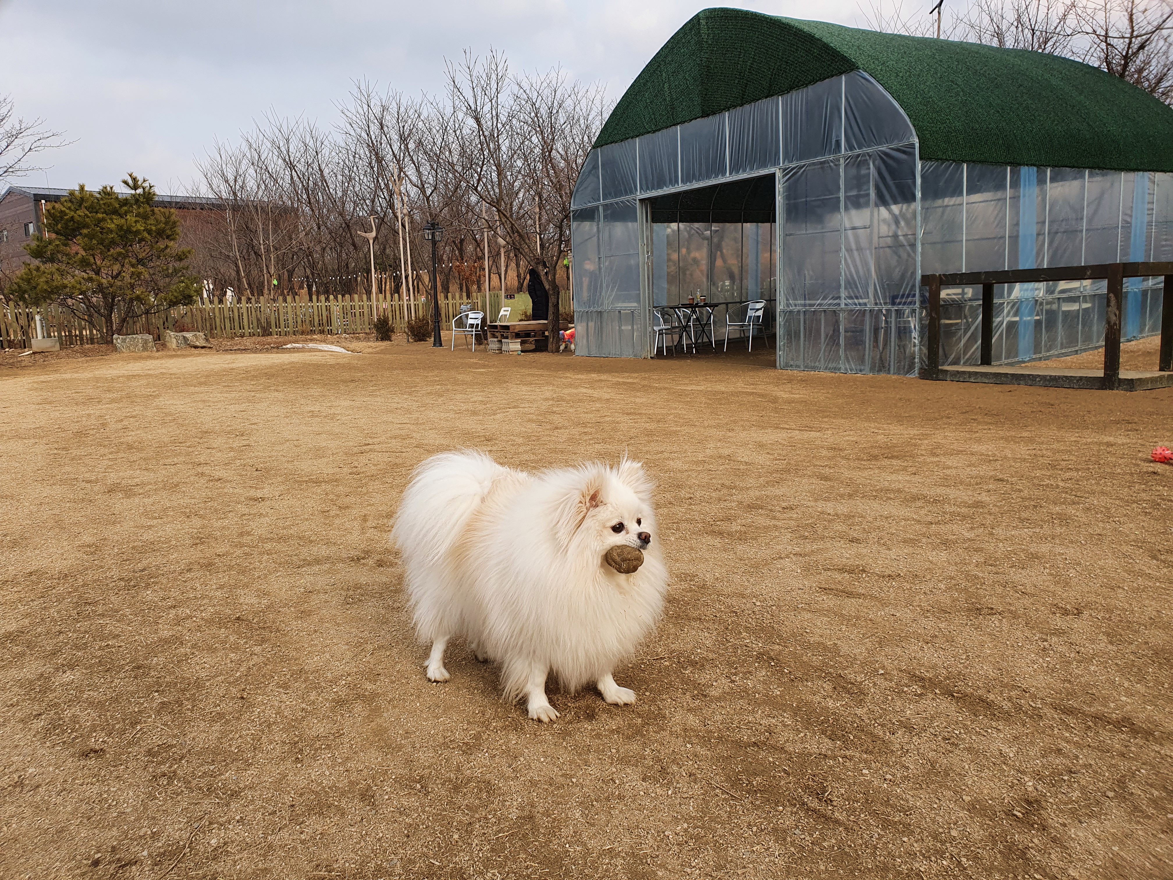 저 안에 비닐하우스같은곳에는 난로가 있어서 겨울에는 반려견은 놀이터에서 친구들과 놀고 안에는 들어가서 지켜볼수도 있고 들어와서 추위도 있는 공간있어서 좋습니다.