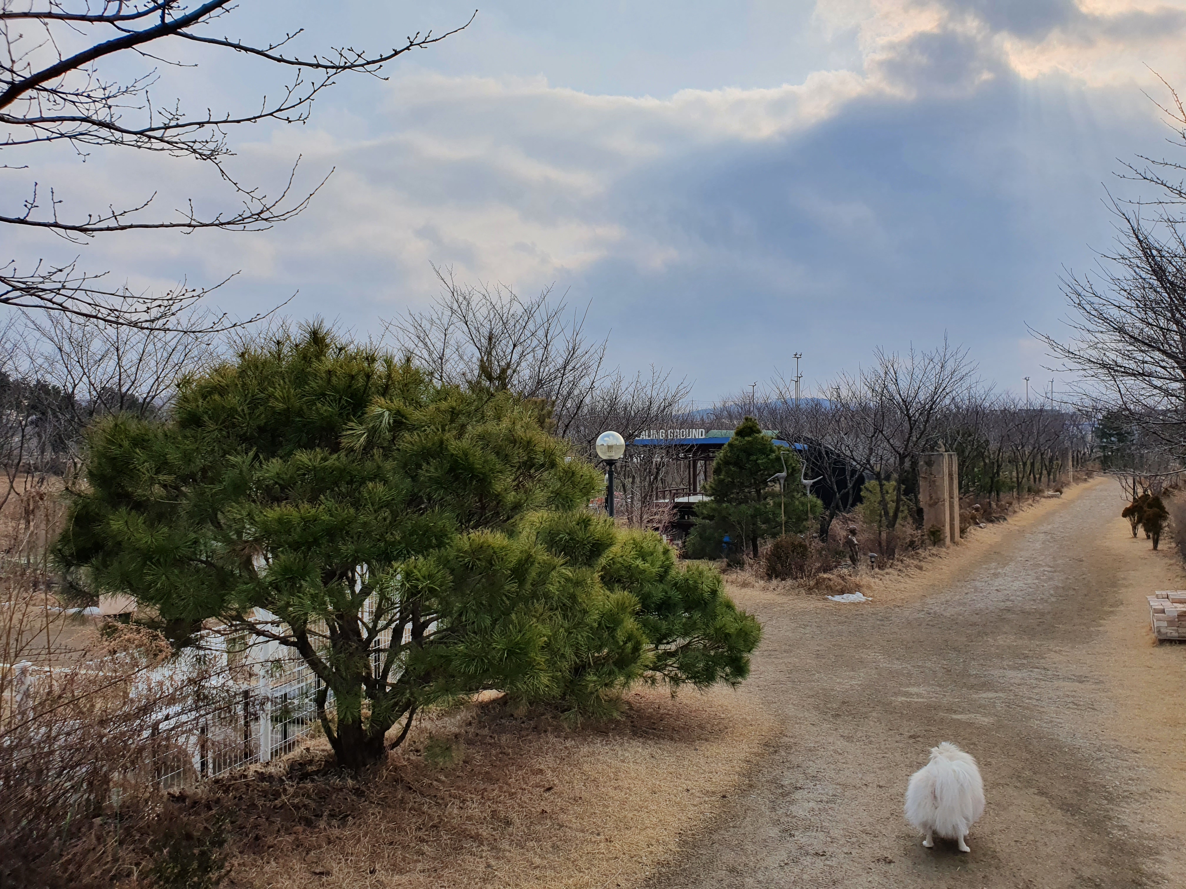 이쪽길을 따라 계속 가다보면 힐링그라운드 전체를 한바퀴 돌게됩니다. 보통 자리에 받아온 메뉴를 두고 셋이서 한바퀴 돌고 와서 앉아서 마시다보면 설이가 알아서 돌아다니다가 다시 돌아오고 합니다 ㅎㅎ