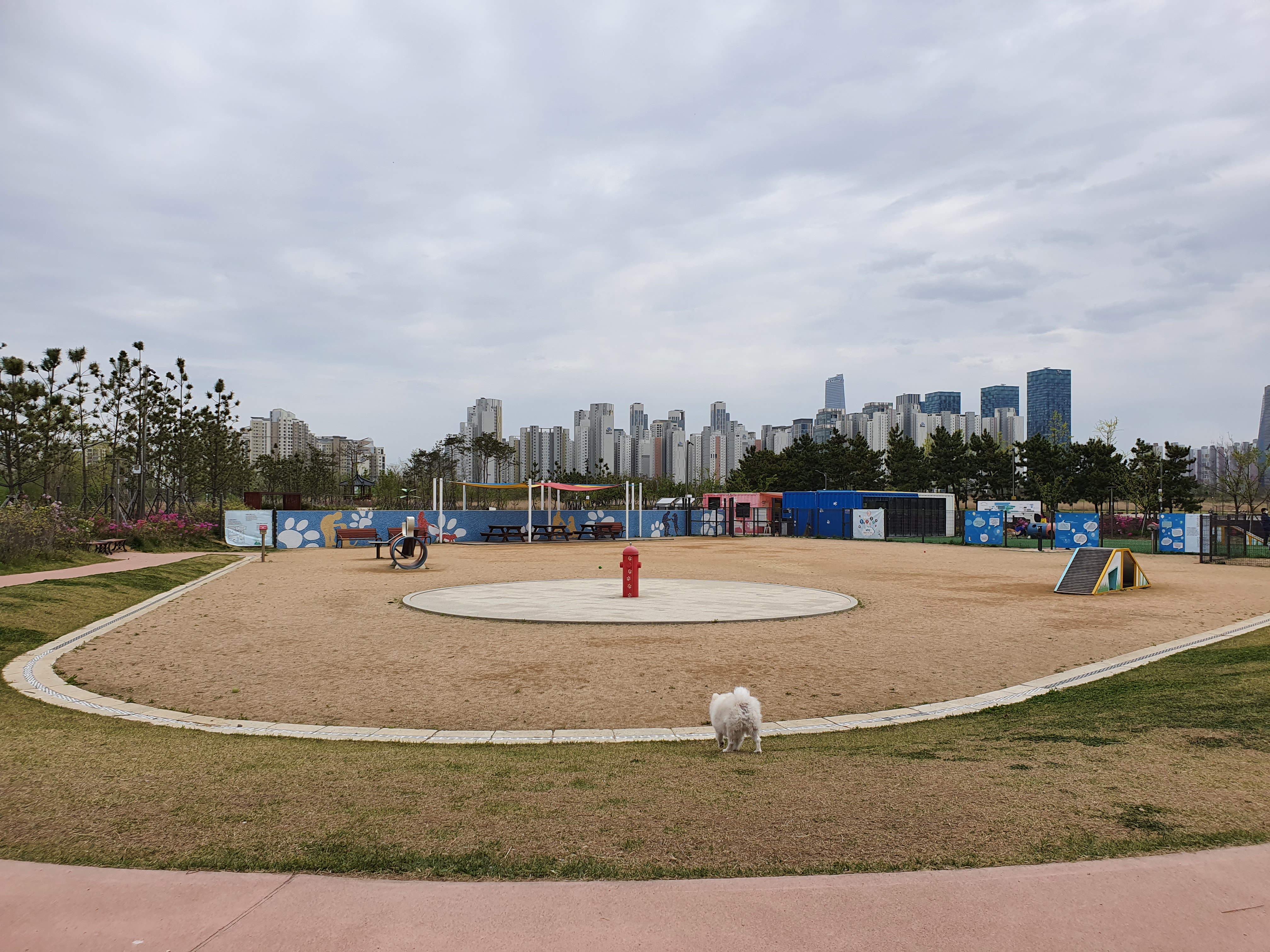 원래 이사오기전에는 인천대공원 반려견놀이터를 자주 갔었는데 송도가 규모가 더 크기도 하고 반려견 놀이터에서 놀다가 주변을 산책하기도 달빛축제공원이 더 좋은거같습니다.