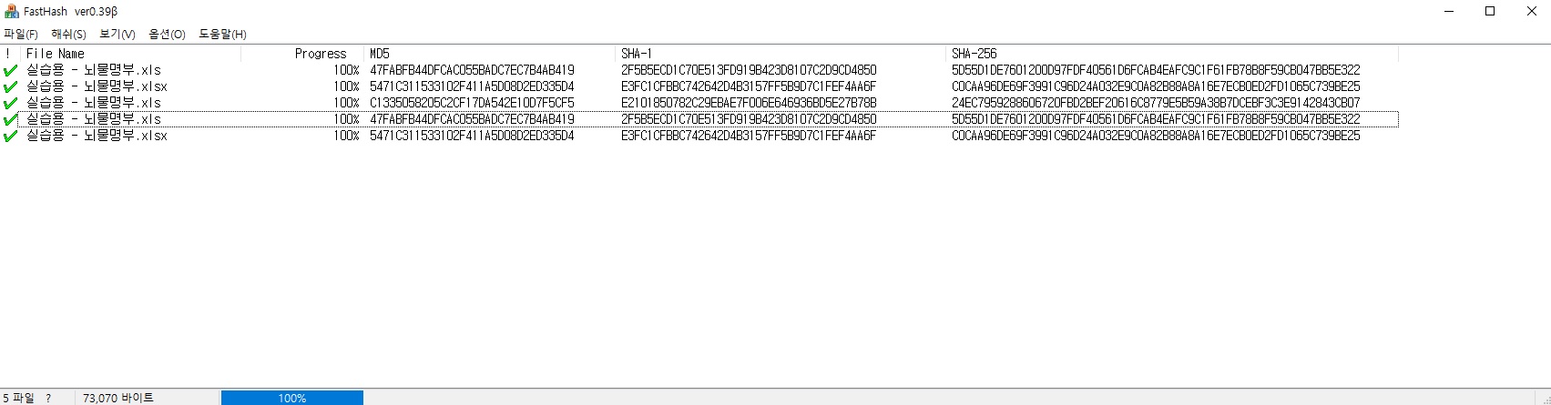 2. 엑셀의 경우 2000년 이전 xls 확장자의 경우(2000년 이후는 xlsx) 파일을 여는것만으로도 해시값이 변경 된다.