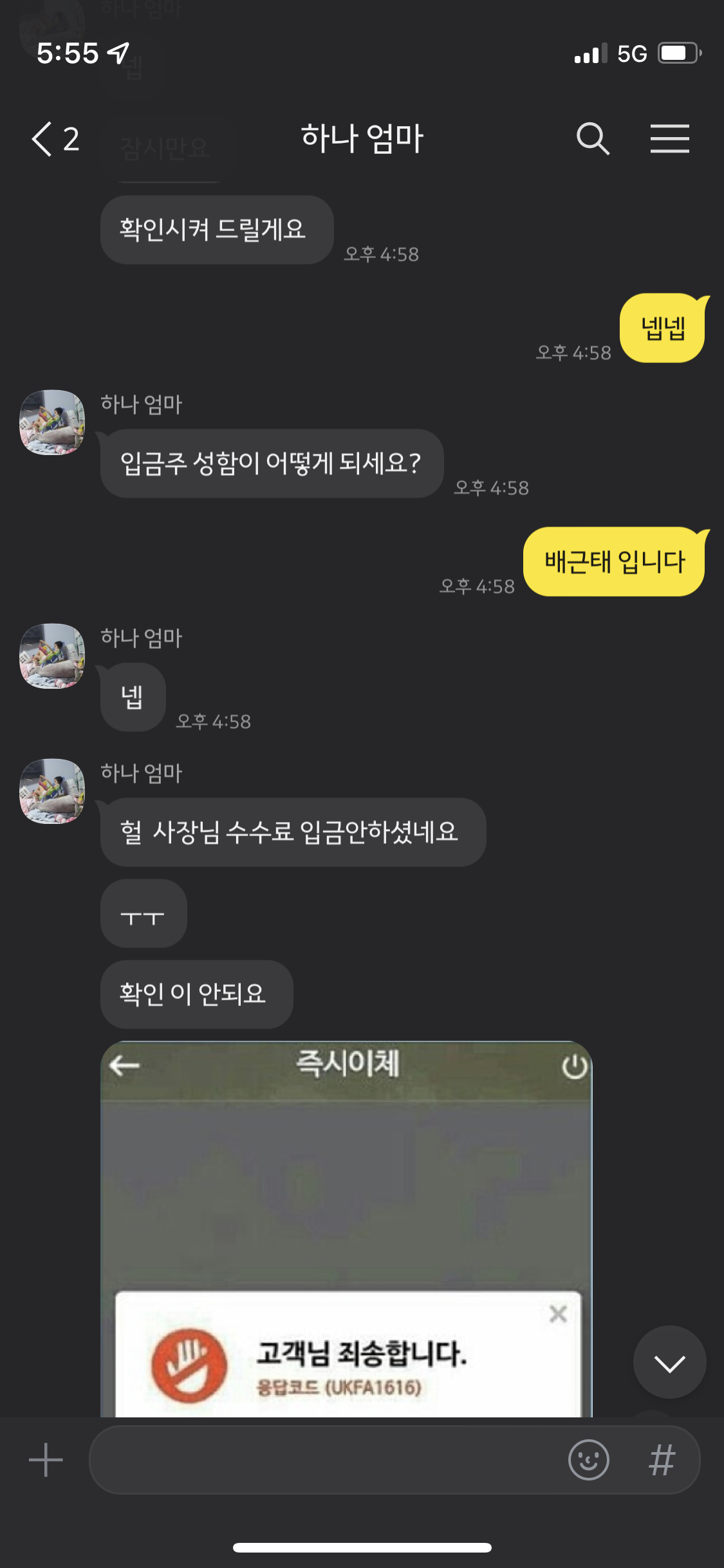 내용만 보면 흔히 인스타그램에서 유행하는 하루 투자로 뭐 500만원, 천만원 벌었다고 후기 인증하는 시스템이랑 비슷한데 뭐 뻔합니다. 수수료를 입금안하면 확인이 안되니 수수료랑 원금을 다시 입금해달라 뭐 이런식으로 하는것인데 말같지도 않은 소리가 대부분입니다. 사진은 비슷한 피해자가 나오지 않게 하기 위해 친구에게 허락 받고 올립니다.
