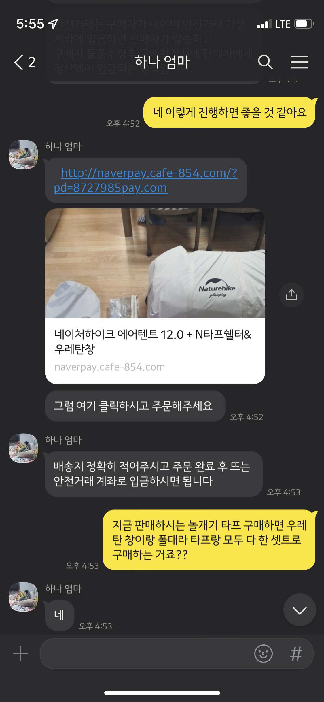 모든 사기는 원칙적으로 해결하는것이 제일 좋습니다. 저렇게 url을 직접받아서 거래하지마시고 네이버카페에 네이버안전거래 등록 상품을 올려라 그러면 내가 거기서 직접 구매하겠다라고하여 네이버페이로 구매하는것이 제일 안전합니다.