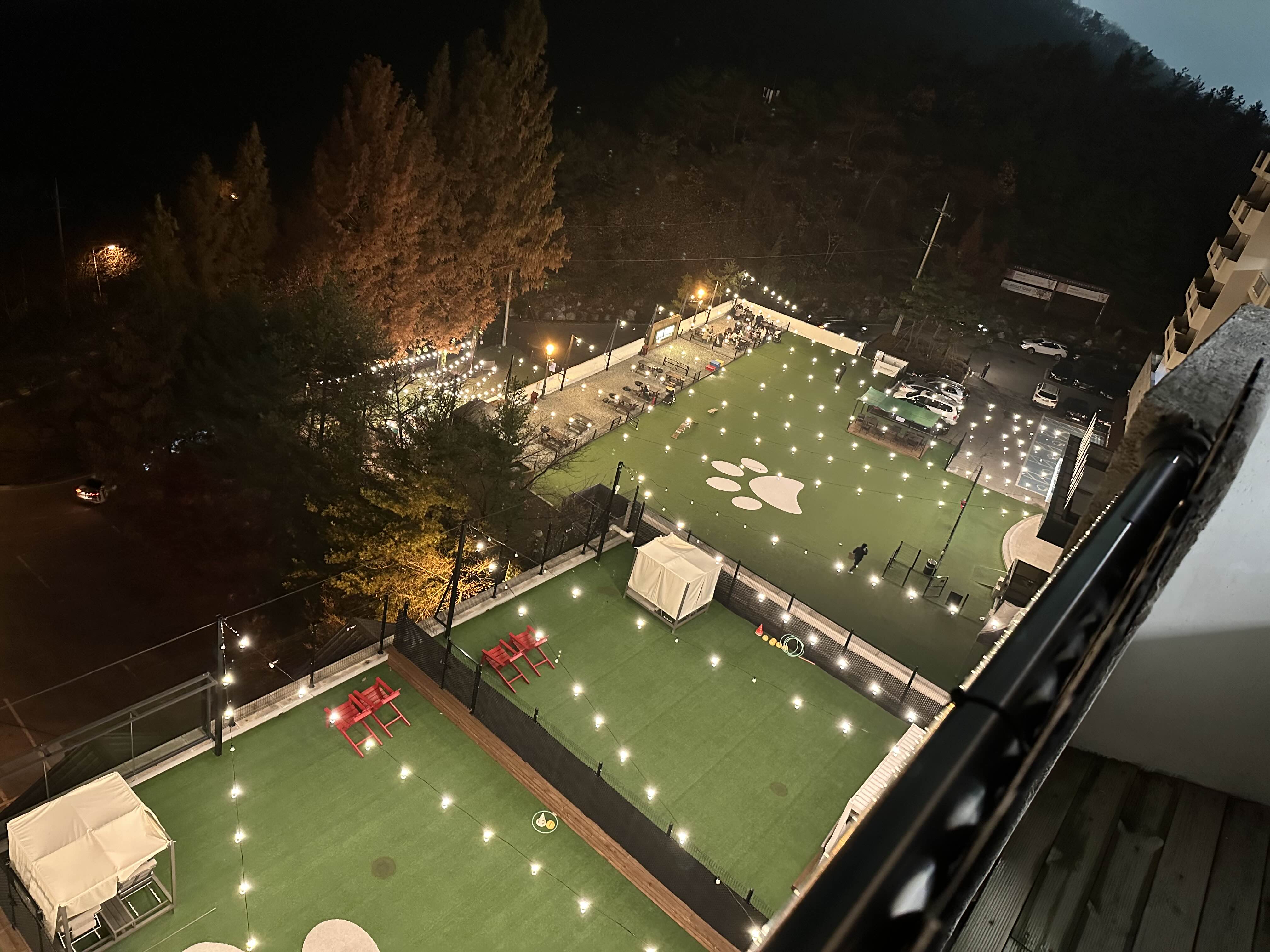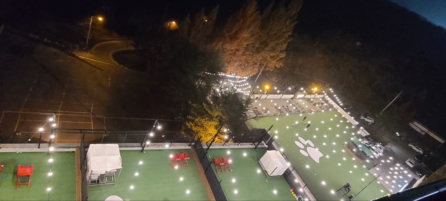 저도 이용은 해보고싶었지만.. 이번에는 빠르게 예약을 하느라 게다가 너무 늦게 도착해서 크게 누리지도 못했습니다. 나중에 애기들 크면 사람이 많으니까 프리미어 펫룸을 빌려서 와야겠다라는 생각을 했습니다. 저는 7층에 있어서 베란다에서 내려보면 프리미어펫룸이 보이긴 했는데 생각보다 만족스러워 보였습니다.