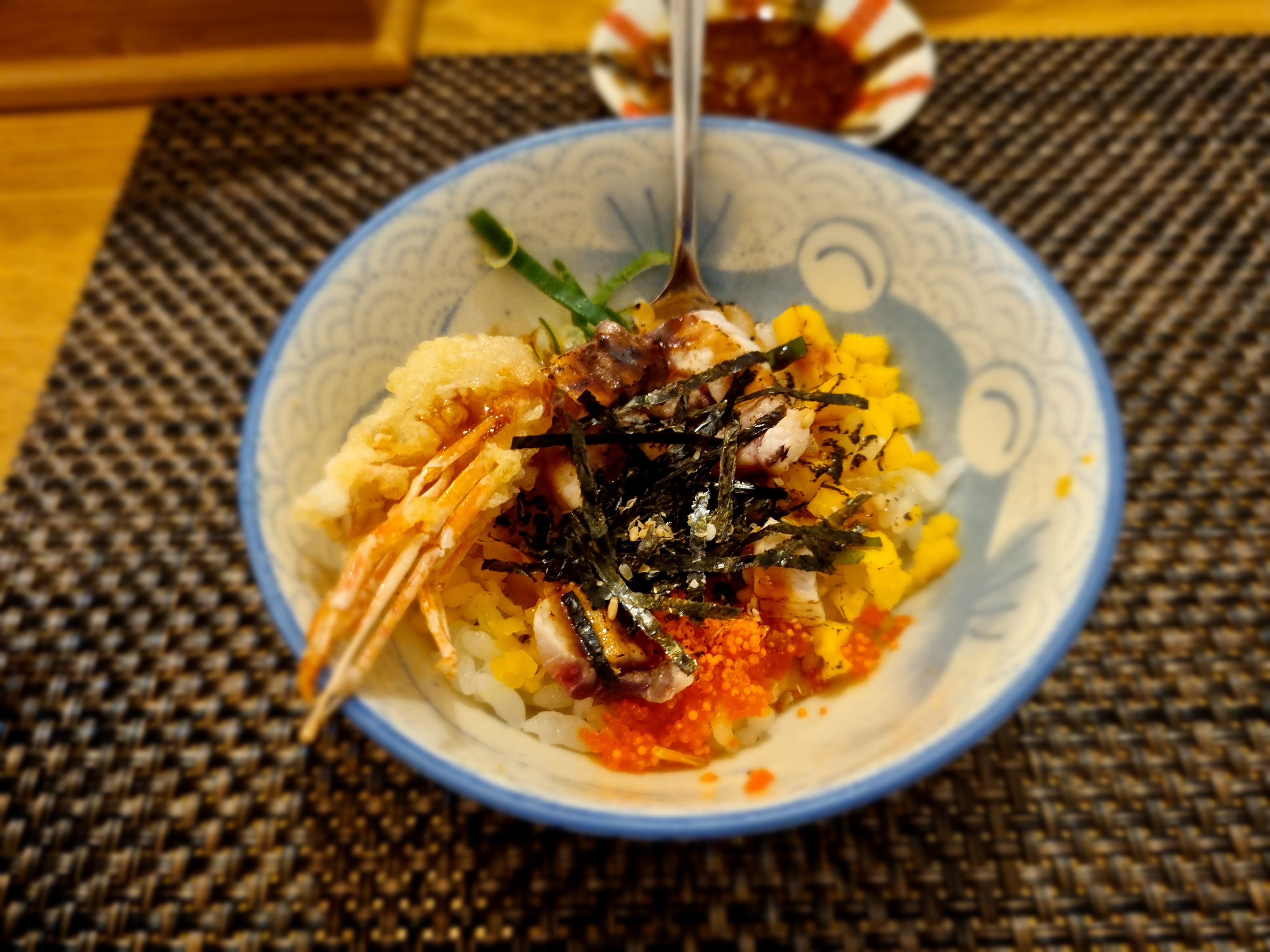미니카이센동인데 진짜 맛있습니다. 저는 저 새우머리를 좋아하고 와이프는 싫어해서 항상 제가 연애때부터 2개를 먹었습니다 ㅎㅎㅎ
