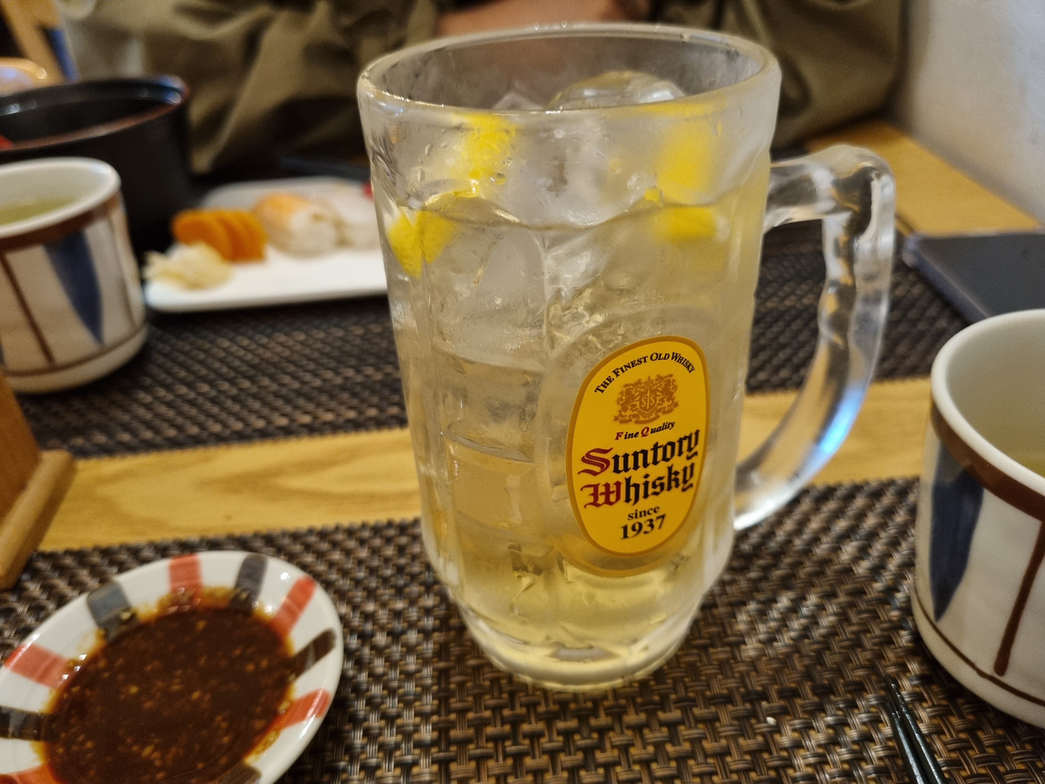 와이프는 올때마다 자주 먹는 하이볼을 시켰습니다. 맛은 정말 맛있습니다. 예전에 스시사쿠에서 처음먹어보고 시즈오카 여행가서 먹었었는데..너무 밍밍해서 둘이서 뭐지 내가 아는 하이볼이 아닌가 했던적이 있습니다.