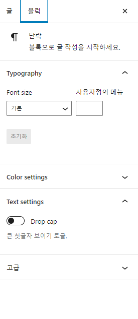 다시 관리자 페이지로 돌아가보겠습니다. 일단 좌측 메뉴를 보시면 대시보드~설정까지 메뉴가 정리 되어있습니다. 각 메뉴들은 직접 한번 들어가서 보시면 대부분 이해가 되는 내용이라 따로 설명드리지 않겠습니다. 우리가 주로 다룰 메뉴는 글, 페이지, 테마디자인, 플러그인, 사용자 정도가 있습니다.